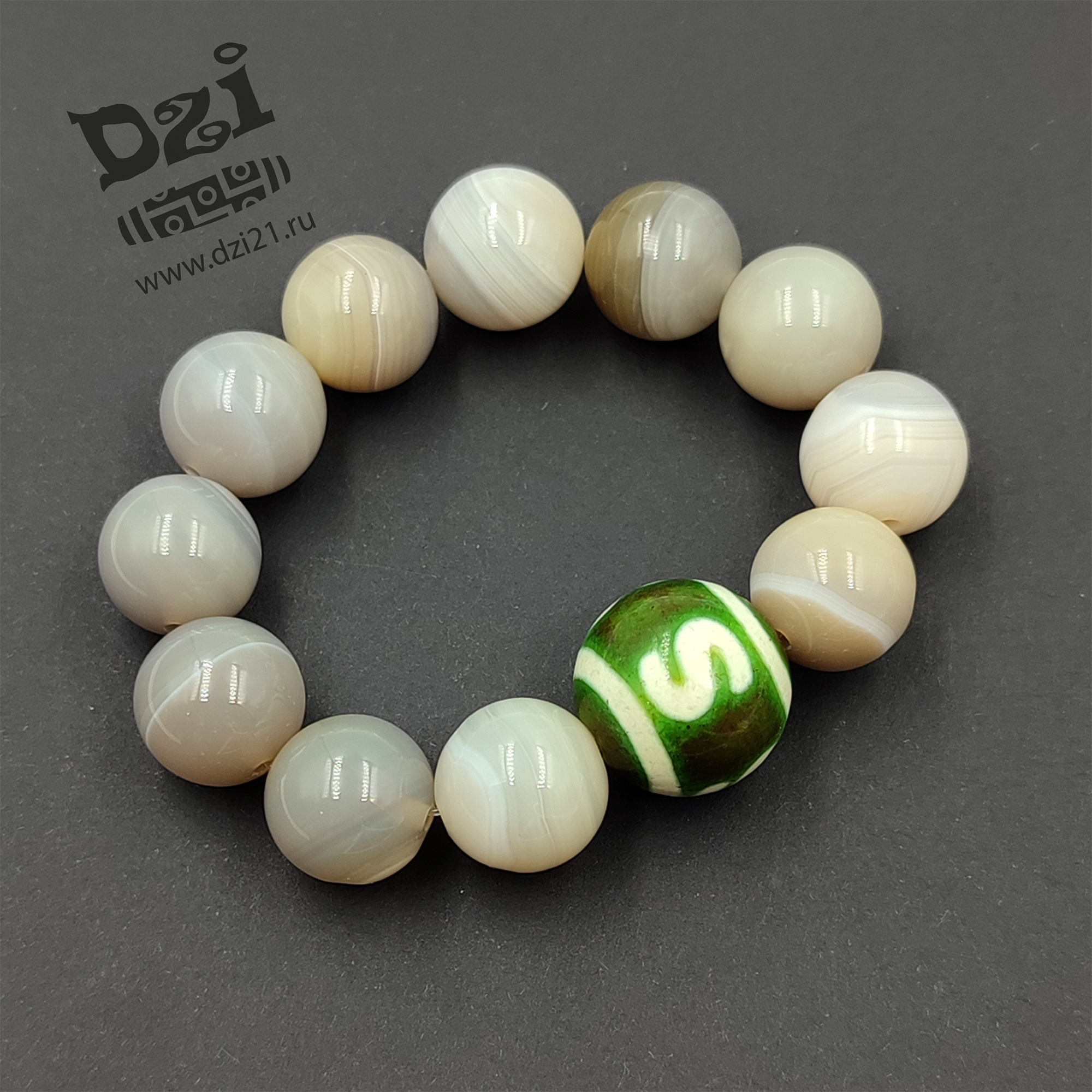 Бусина Дзи: агат. Основной браслет: Агат 14 мм