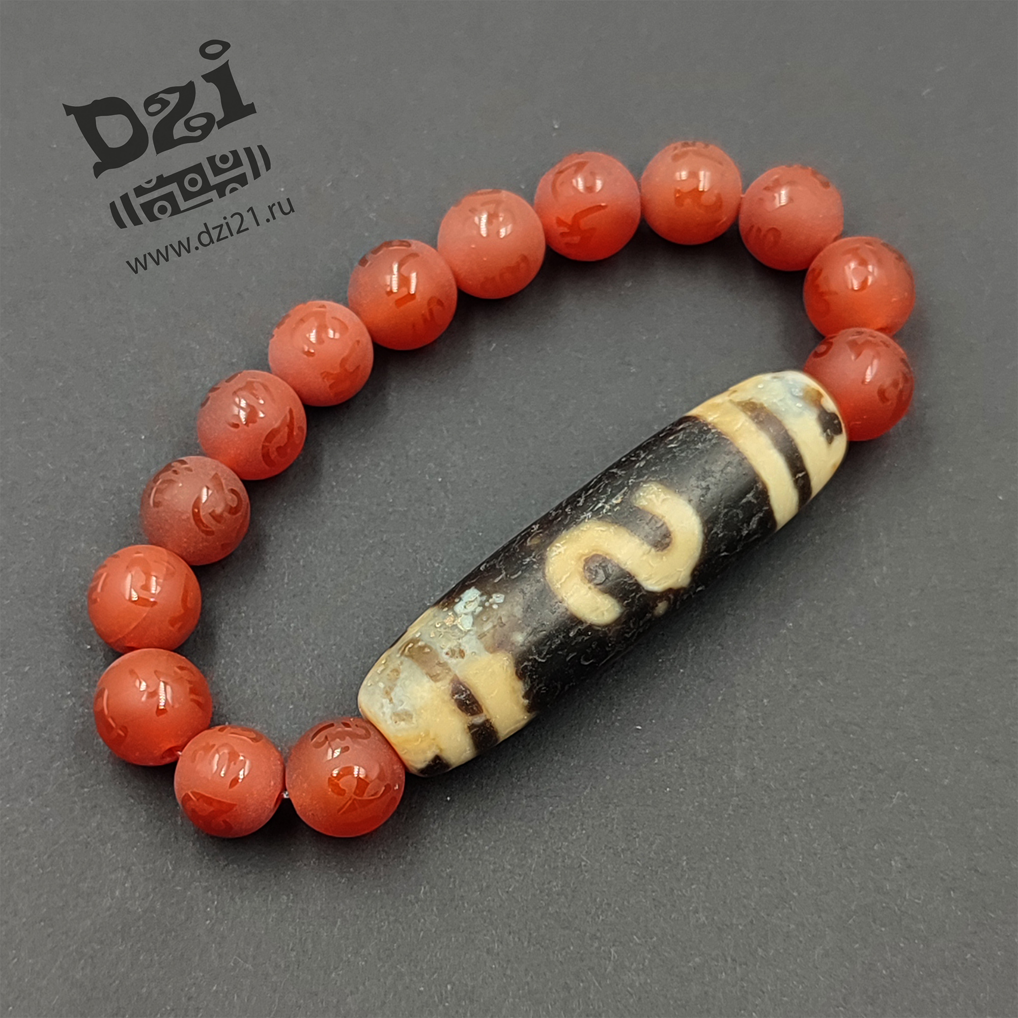 Бусина: агат. Основной браслет: Агат красный матовый c мантрой «Ом мани падме хум» 10 mm