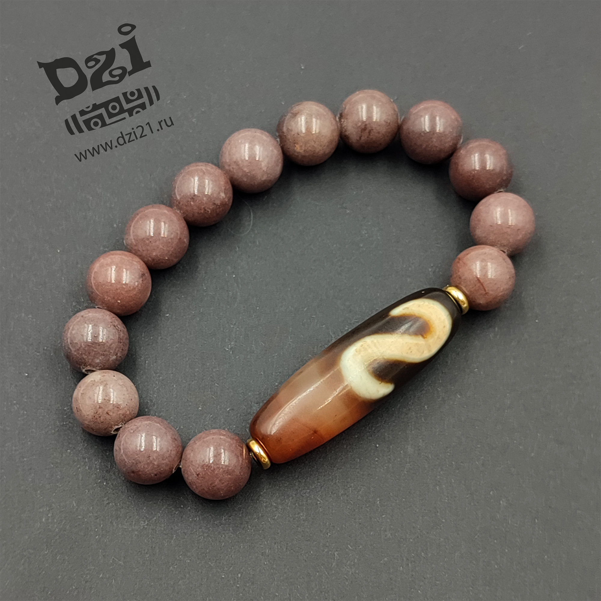 Бусина Дзи: Агат. Основной браслет: Авантюрин фиолетовый 10 mm