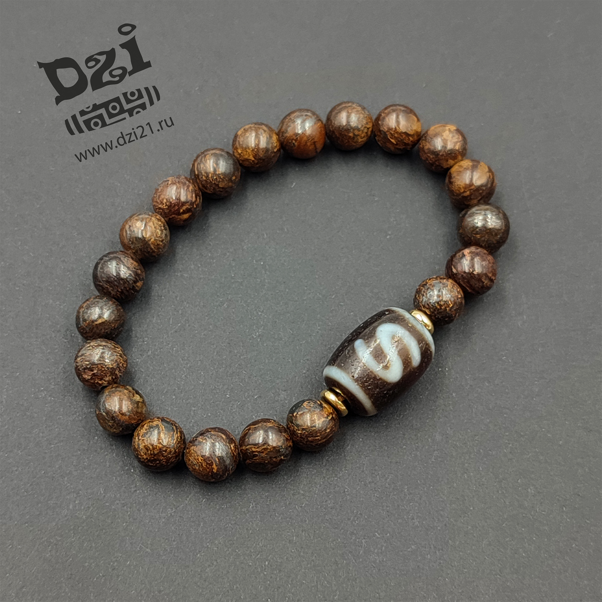 Бусина Дзи: агат. Основной браслет: Бронзит 8 mm