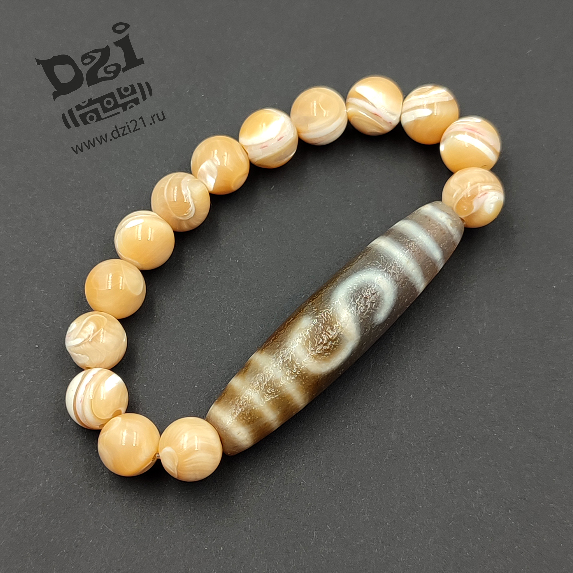 Бусина Дзи: агат. Камни: ПЕРЛАМУТР 10 mm