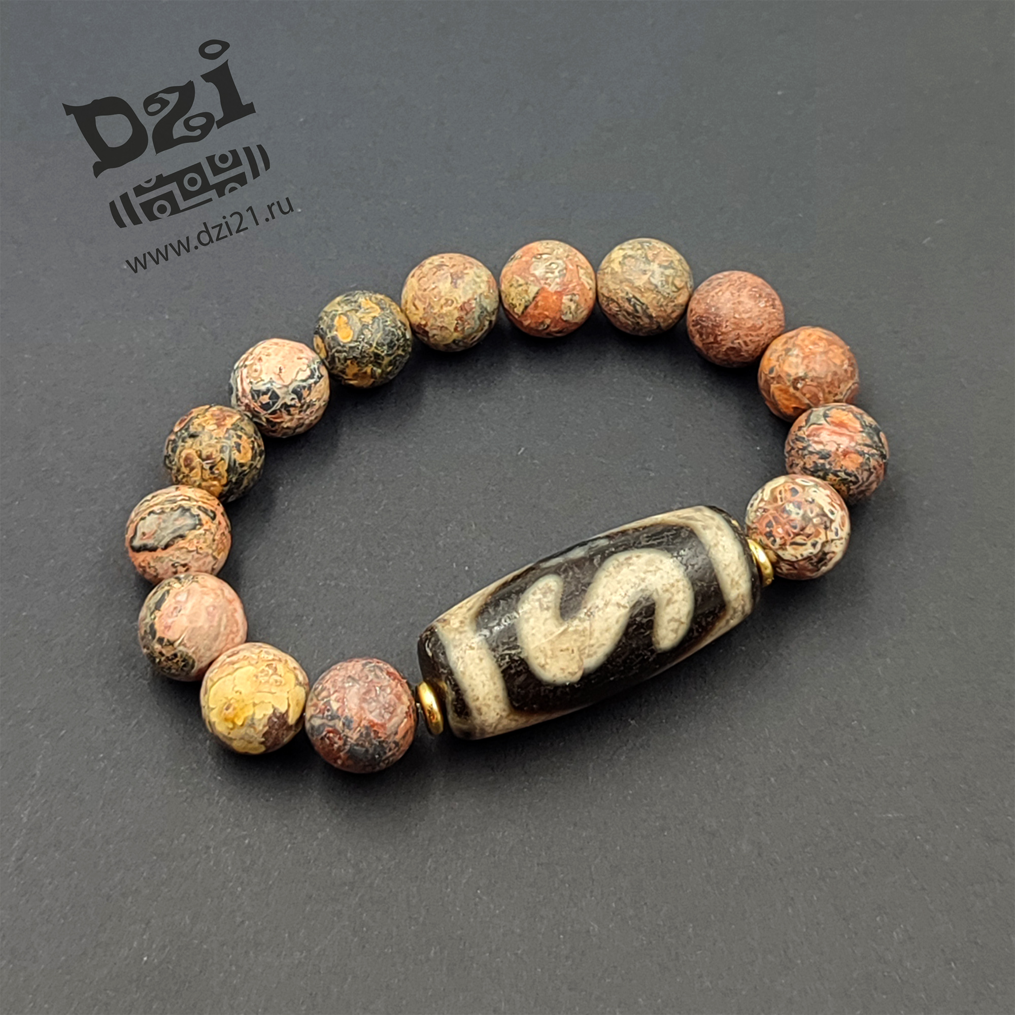 Бусина Дзи: Агат. Основной браслет: Яшма пятнистая 10 мм
