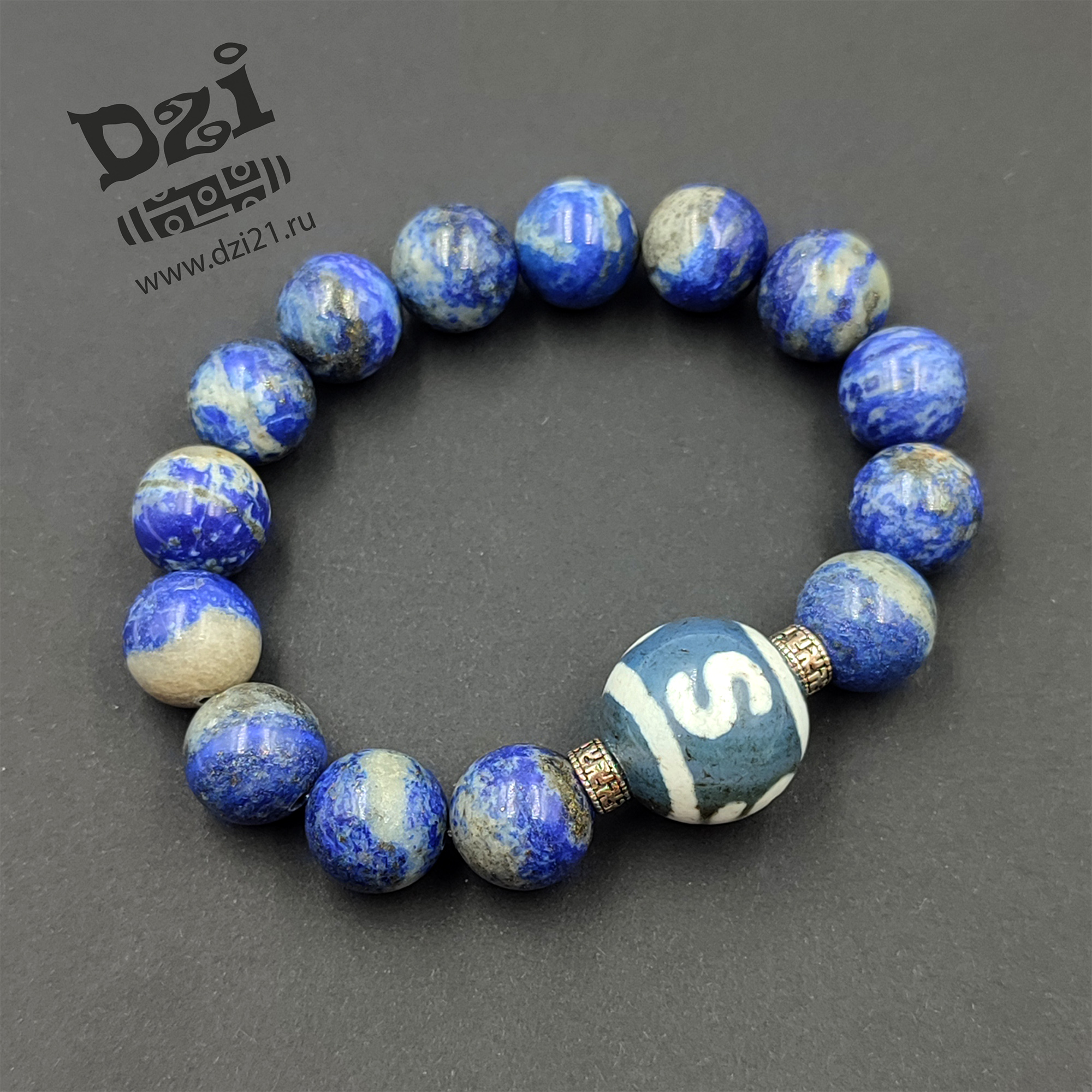 Бусина Дзи: Агат. Основной браслет: Лазурит 12 mm